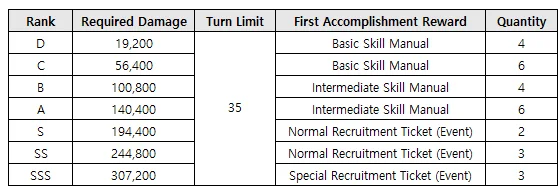 - You can acquire rewards relative to the rank you've acquired based on the damage dealt. (Available once per day)