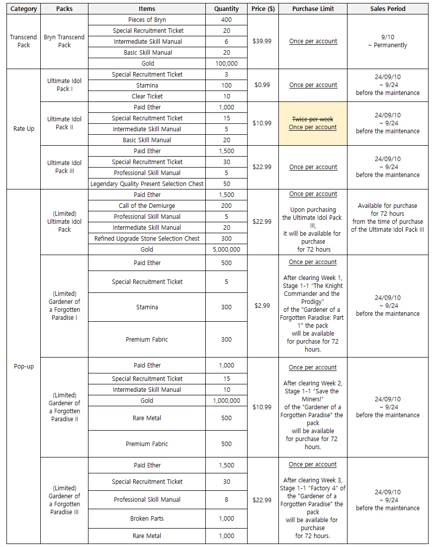 ㄴ Perchase limit of Ultimate Idol Pack II