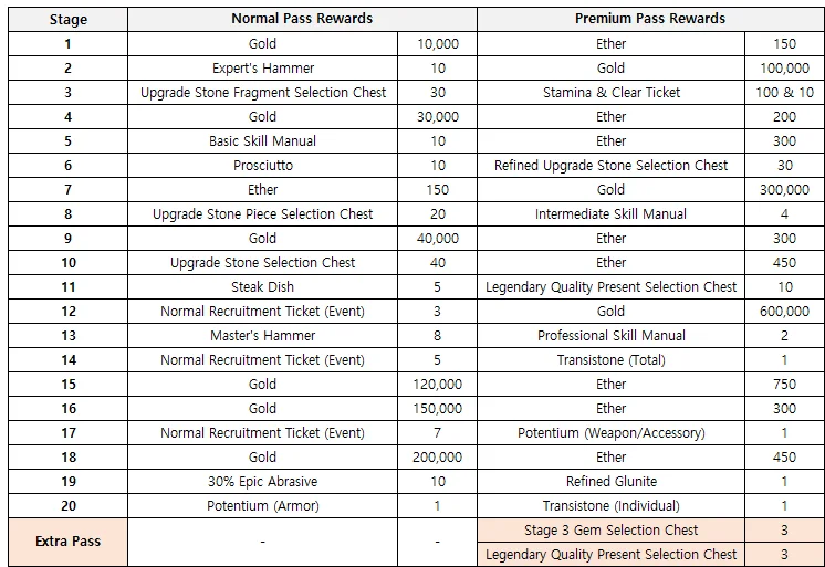 - The contents of the Season 2 Part 1 Normal Pack and the Season 2 Part 1 Hard Pack, both containing 10 items each, will be updated.