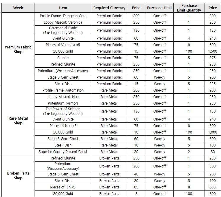 - The mission and dungeon clear history previously played will be deleted, and the achievement rewards for each dungeon, as well as the initial dungeon clear rewards, will reset.