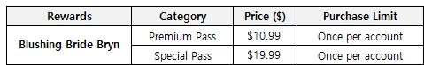 ※ Players will be able to obtain ‘Blushing Bride Bryn ‘Costume by purchasing the Special Pass.