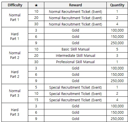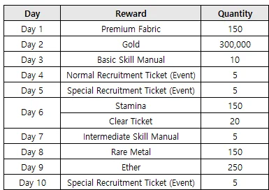 - You will be able to acquire a large amount of dungeon clear rewards and mission rewards including Normal/Special Recruitment Tickets (Event) and Ether.