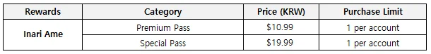 - 'Inari Ame' can be obtained when you purchase the Special Pass.