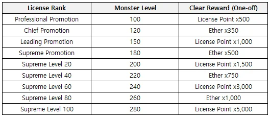 ㄴ After the promotion challenge, the license rank level increases, and the Adventure License consists of five ranks: Apprentice, Professional, Chief, Leading, and Supreme.