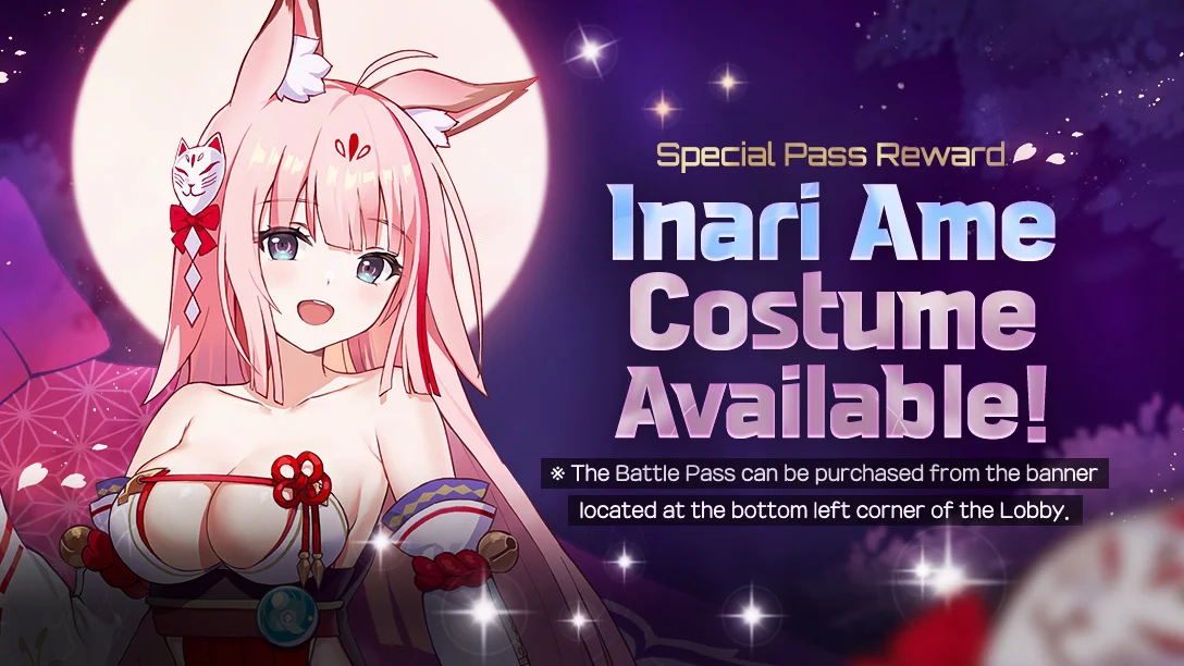 - A new Battle Pass will be added and will provide Ame's costume, Inari Ame.