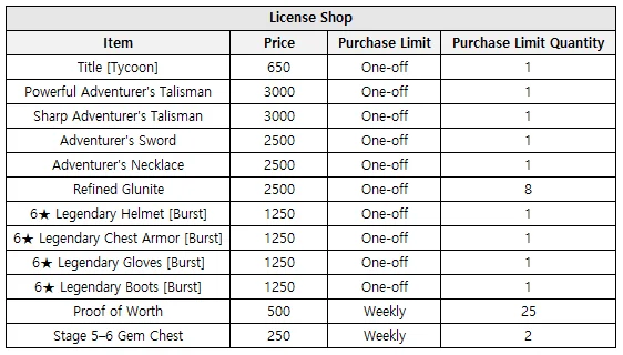 ㄴ With the license points obtained through the Adventure License, you can purchase various items at the Exclusive Shop.