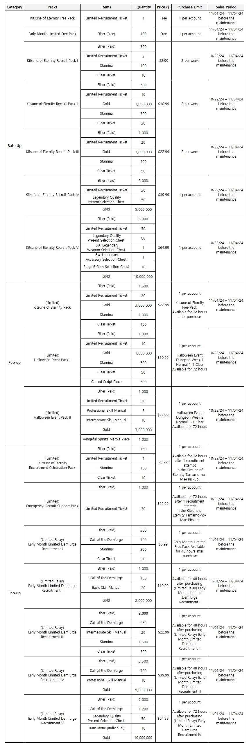 - Event Schedule: 10/22/24 (Tue) after the maintenance ā 11/05/24 (Tue) before the maintenance