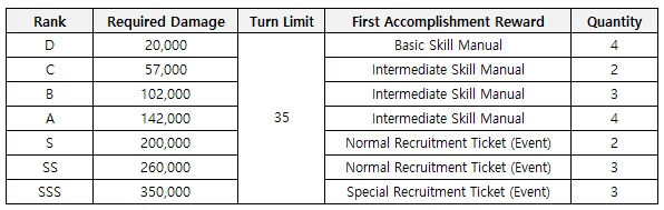 Ā Ā - Ā You can acquire rewards relative to the rank you've acquired based on the damage dealt. (Available once per day)