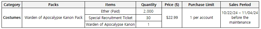 - A new Costume Pack will be added and will provide Kanon's costume, Warden of Apocalypse Kanon.