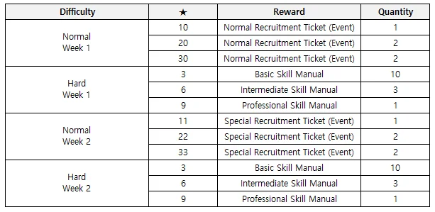 Ā Ā Ā - You will be able to acquire a large amount of dungeon clear rewards and mission rewards including Normal/Special Recruitment Tickets (Event) and Ether.