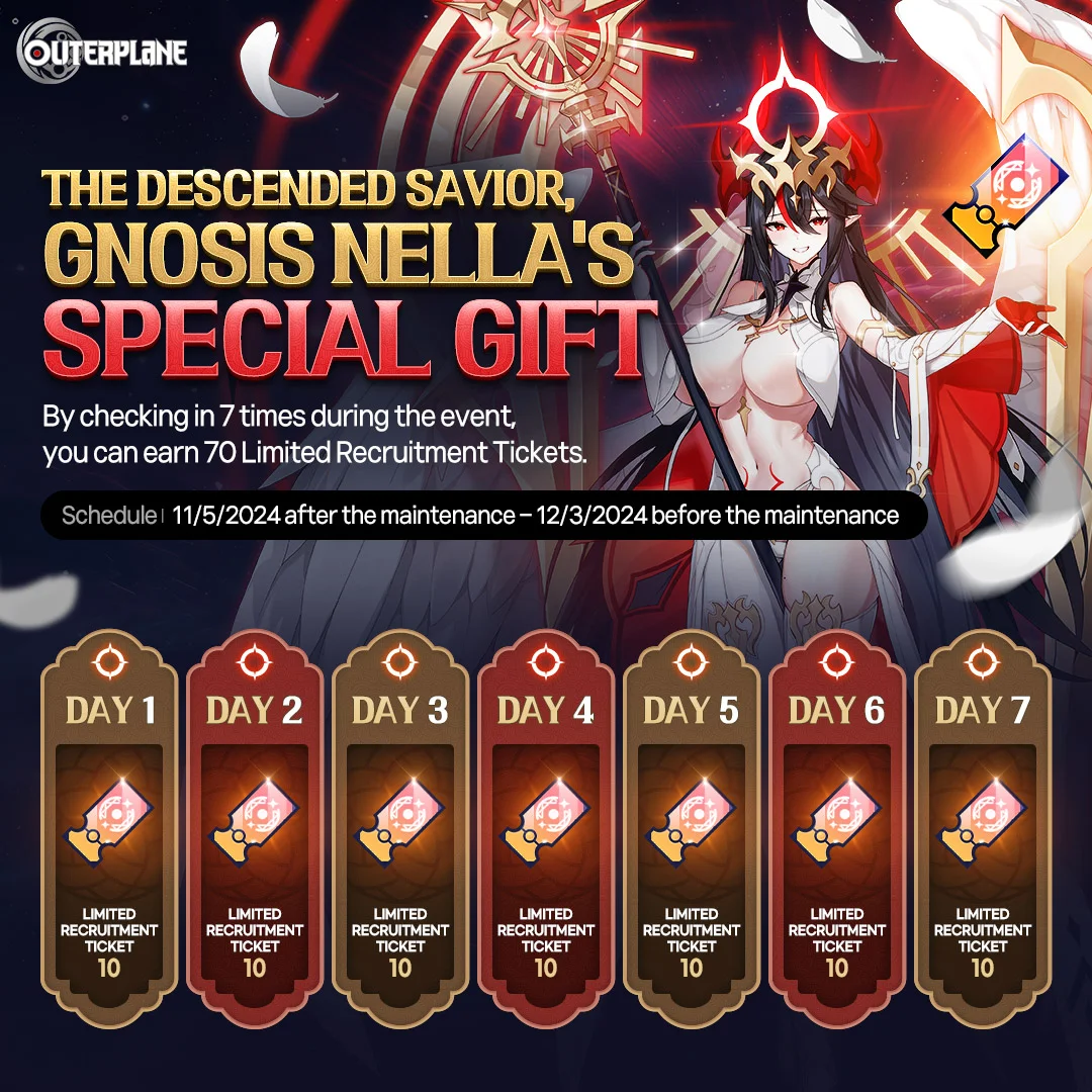 You can recruit Gnosis Nella by spending 150 Mileage.You can use any remaining Limited Recruitment Tickets after the recruitment period ends for the next Festival Recruitment.
