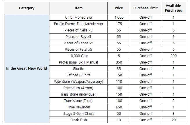 - The event dungeon consists of one part, and the event shop will be available for 3 weeks.