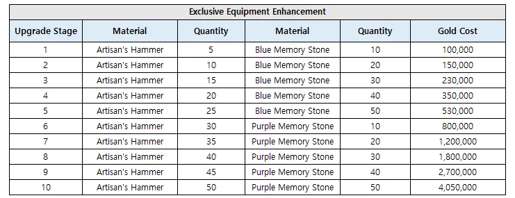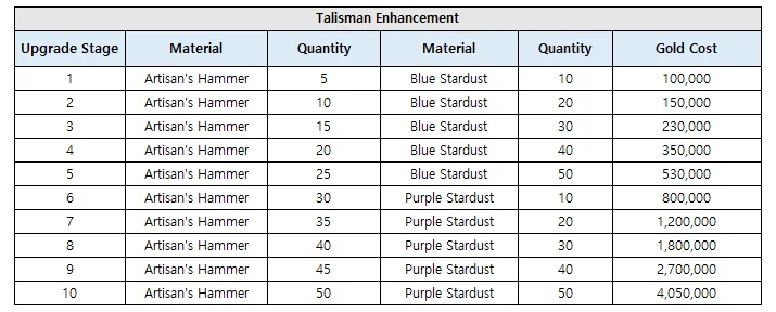 ㄴ Talismans can be enhanced using Stardust, and Exclusive Equipment can be enhanced using Memory Stones.