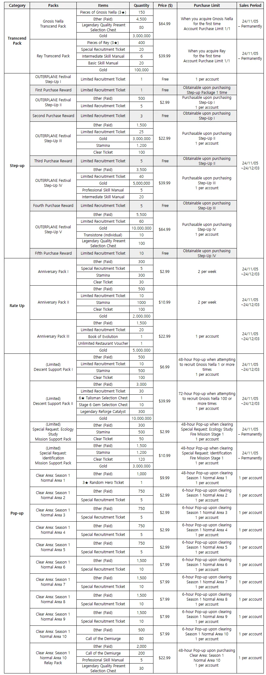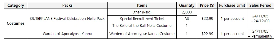 ㄴ Sales Period: 11/05/2024 after the maintenance – 12/03/2024 before the maintenance