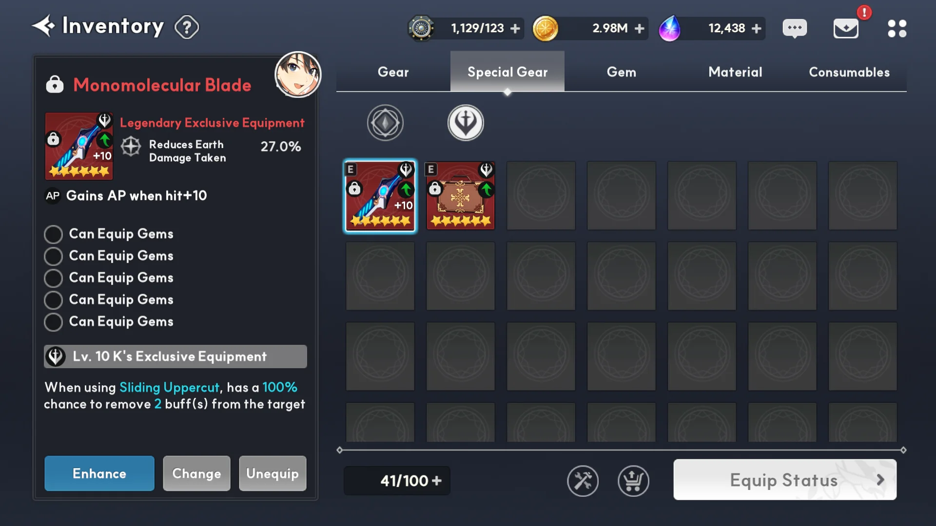 ㄴ The gear gains 1 gem slot and Unique Stats when you reach Enhance Level 5 and 10. ㄴ Exclusive Equipment will gain Main Stats upon enhancement depending on the hero's class. (Enhances an existing effect or adds a new effect.)