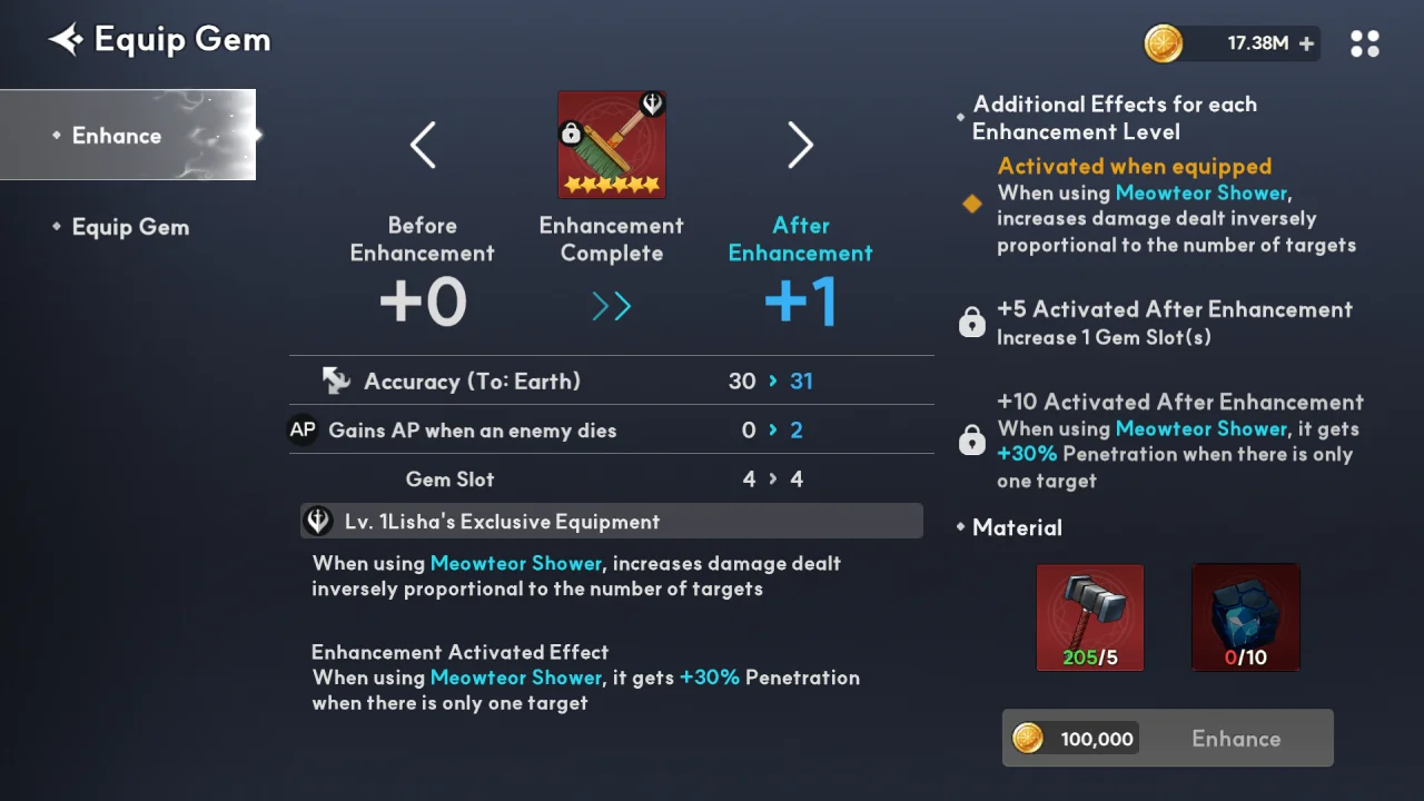 ㄴ You may enhance your gear to a maximum of Level 10.