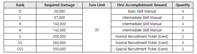 - You can acquire rewards relative to the rank you've acquired based on the damage dealt. (Available once per day)
