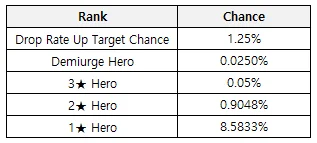 : Previous Demiurge heroes will be added to the Demiurge Recruit Pool and will be included as a possible 3-star recruit, and have a recruit chance different from other 3-star heroes.