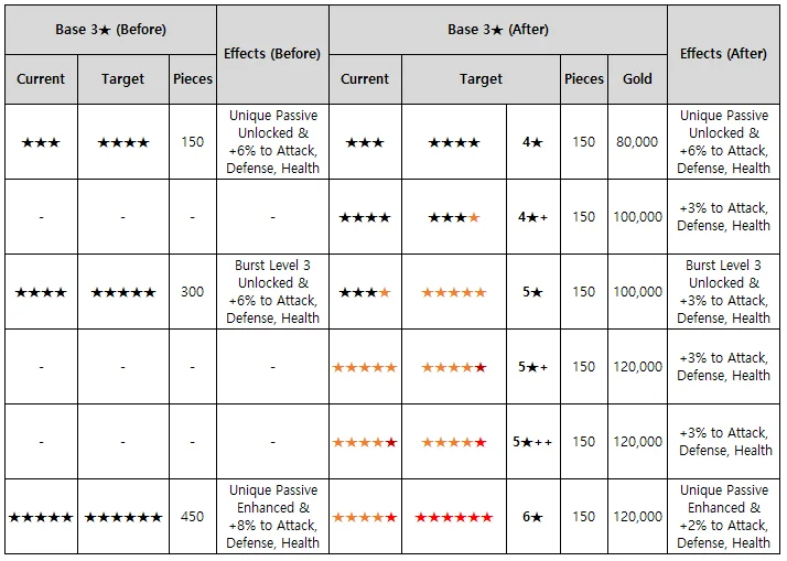 ㄴ Base 1★ and 2★ characters will remain unchanged.