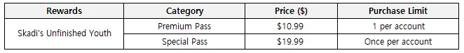 * 'Skadi's Unfinished Youth' can be obtained when you purchase the Special Pass.