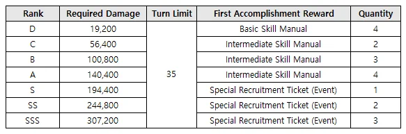 - You can acquire rewards relative to the rank you've acquired based on the damage dealt. (Available once per day)