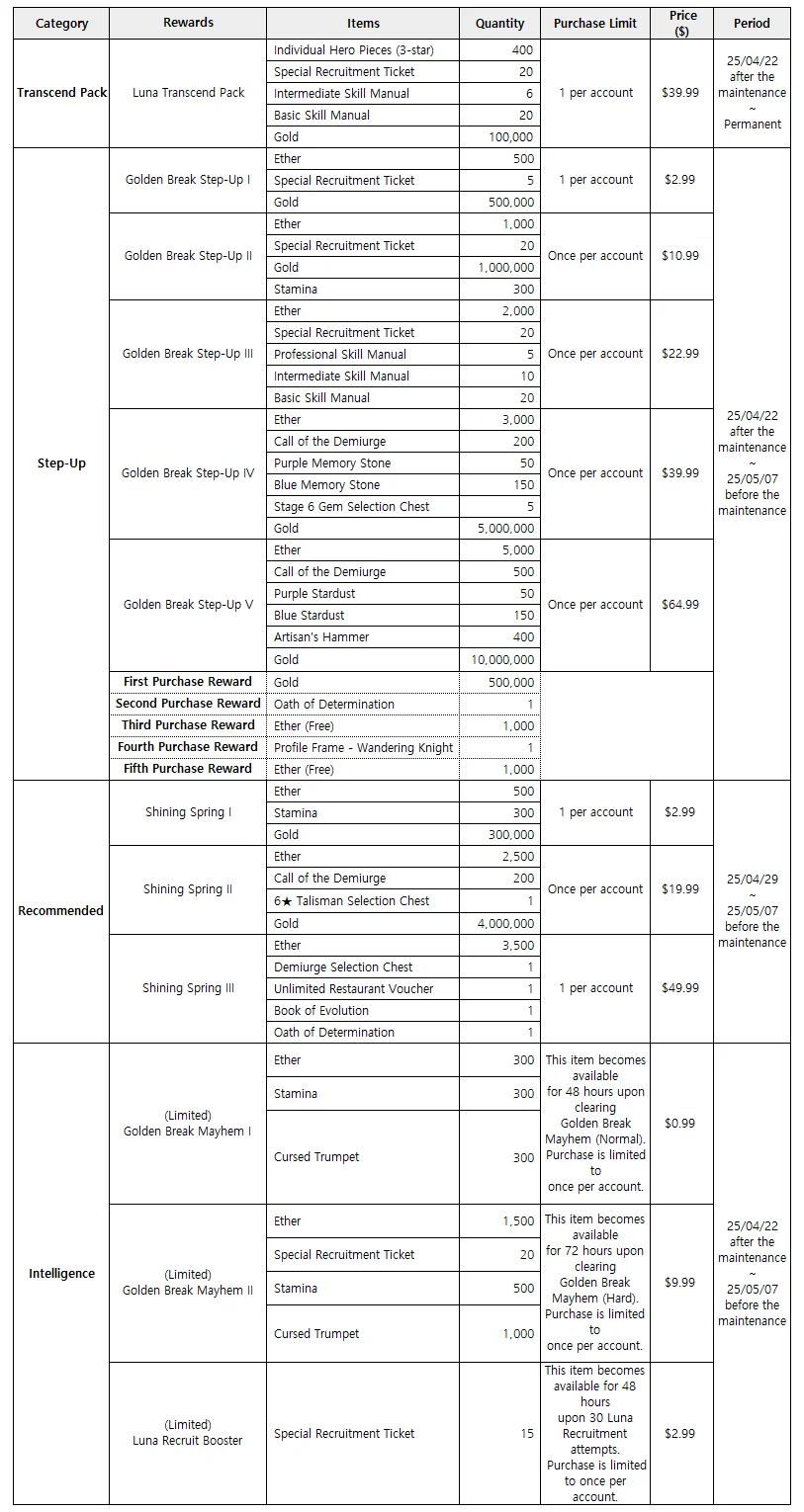 - Clearing the event dungeon [Golden Break Mayhem] with its main character heroes will grant bonus event currency.