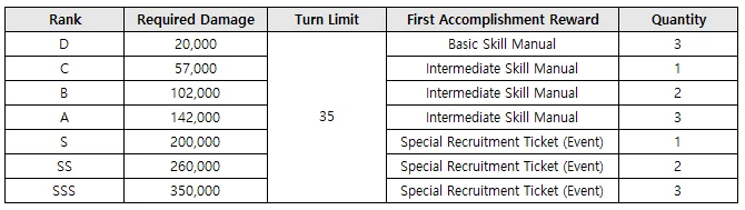 - You can acquire rewards relative to the rank you've acquired based on the damage dealt. (Available once per day)