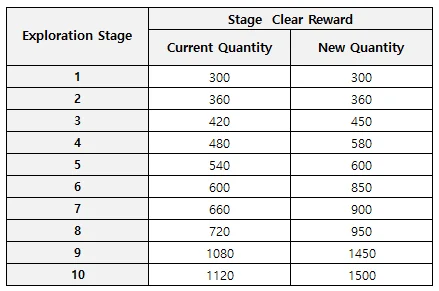ㄴ Effectium: (Before) 50% > (After) 100% ㄴ Drop Items: (Before) 30% > (After) 75% 3) The bonus rate granted when deploying base 3★ heroes will be increased. ㄴ Bonus rates for drop rewards excluding gear- The currency required for the [Change Weather] Order in Terminus Isle Exploration will be changed. ㄴ (Before) 150 Ether → (After) 150,000 Gold
