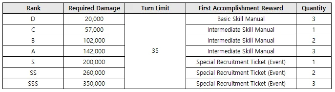 - You can acquire rewards relative to the rank you've acquired based on the damage dealt. (Available once per day)