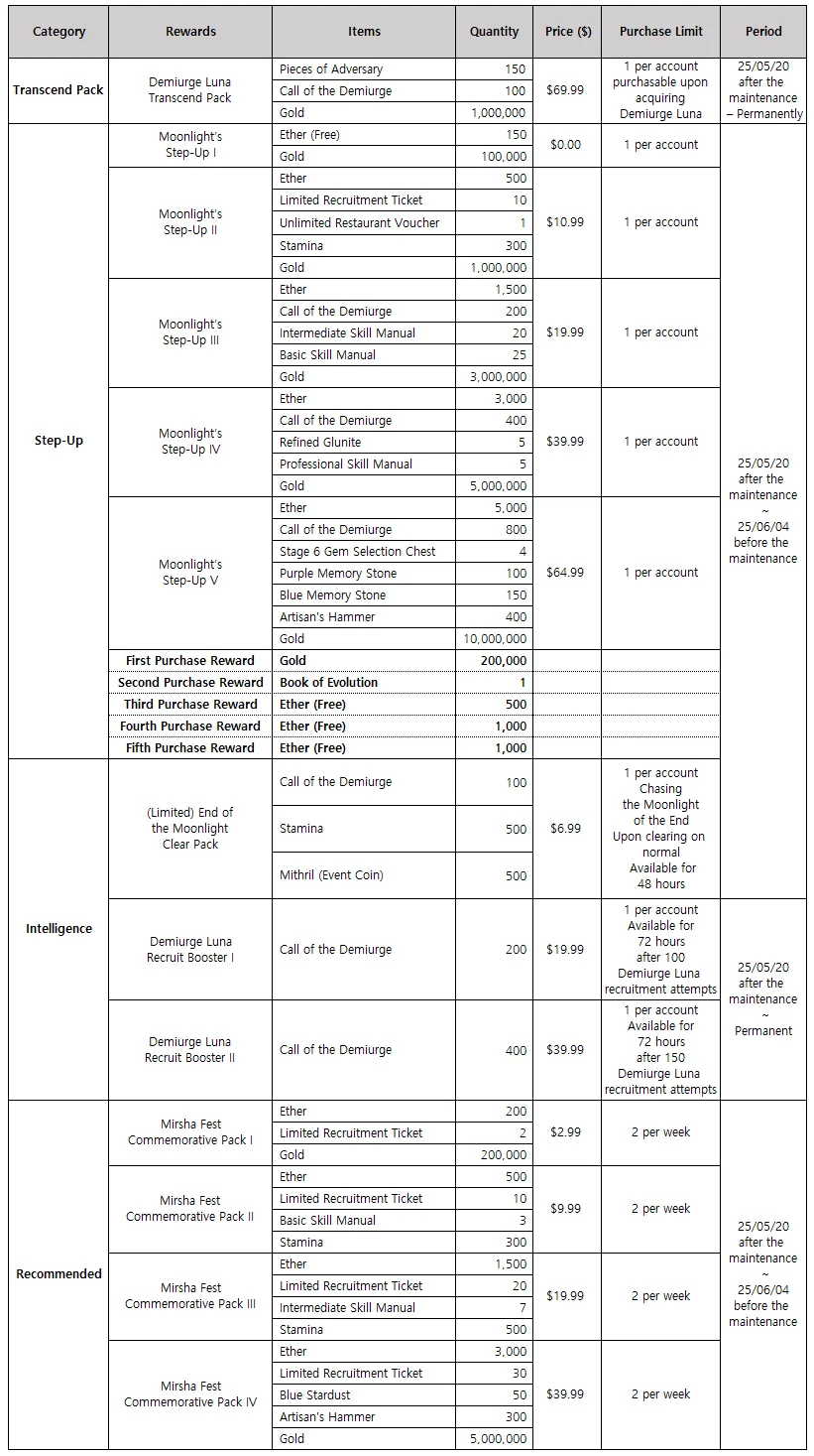 - Event Schedule: 05/20/25 (Tue) after the maintenance ā 06/04/25 (Wed) before the maintenance