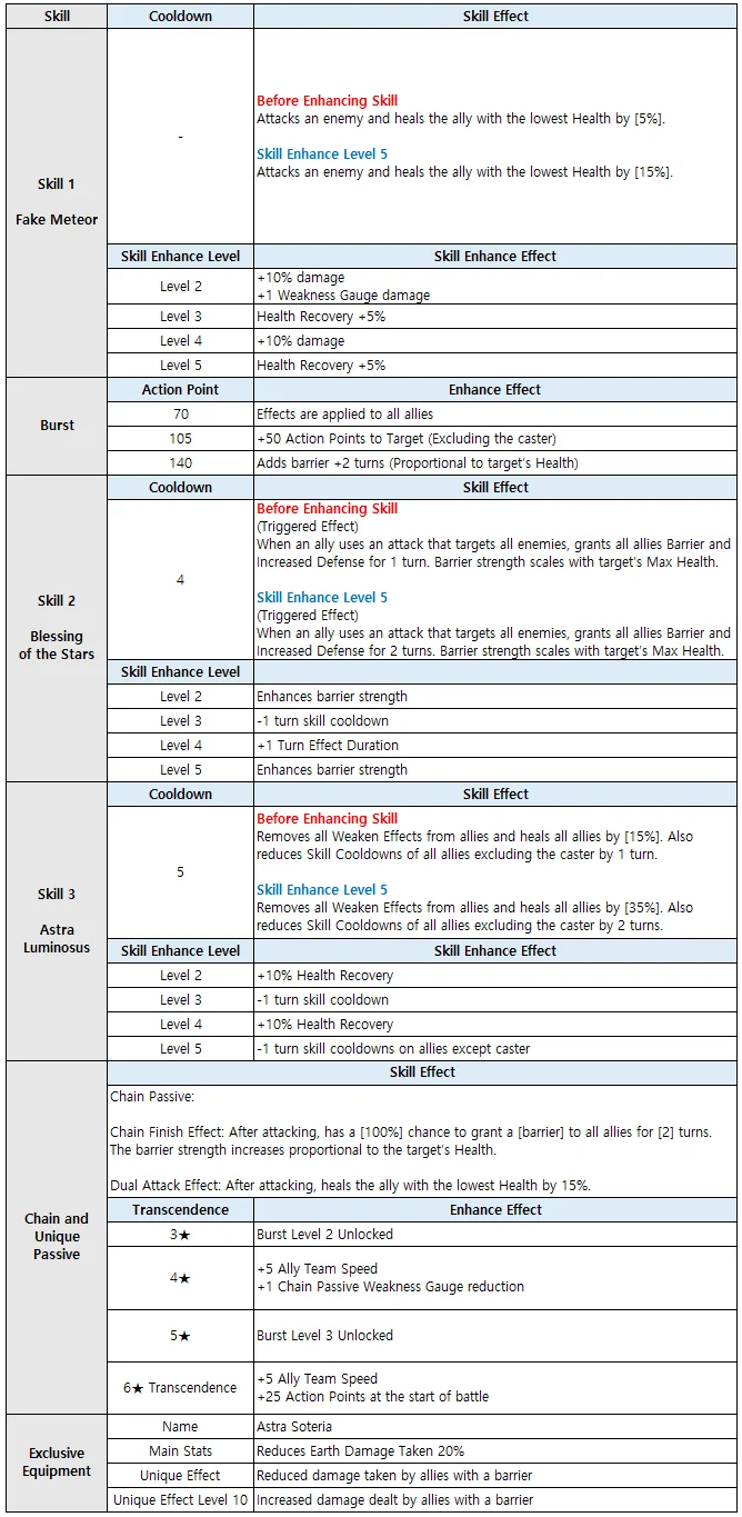 - Liselotte, a genius magician who increases barrier and defense when an ally uses an attack that targets all enemies