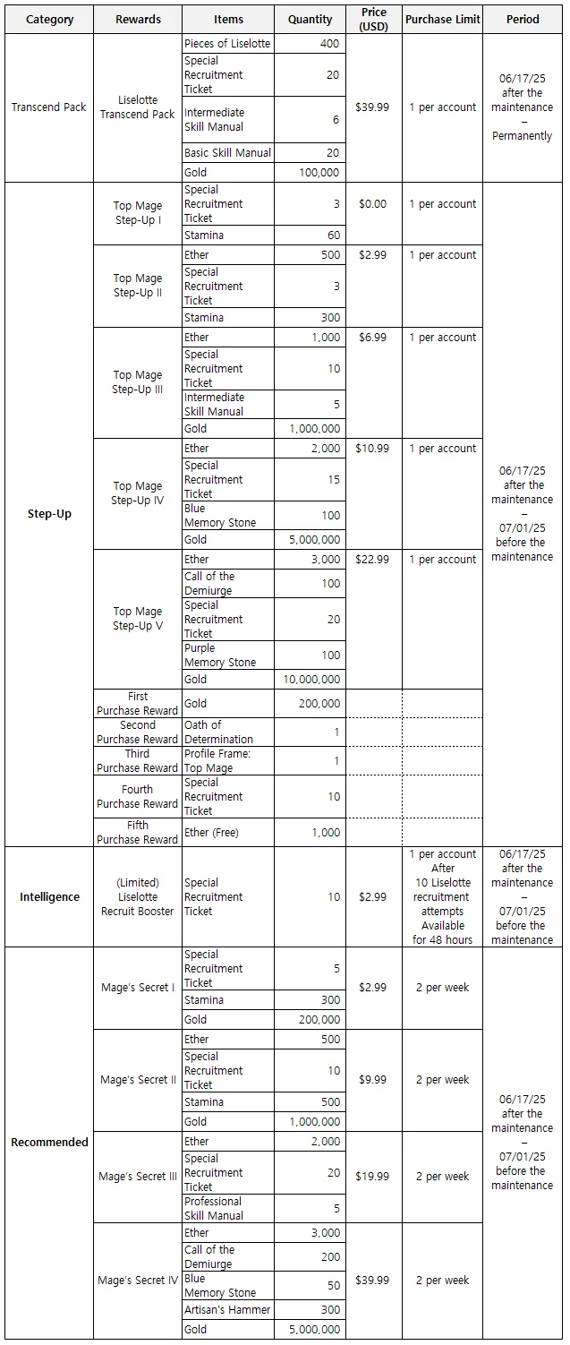 Ā Ā as guaranteed rewards for clearing stages. Ā Ā ć“Ā As compensation for the ticket quantity adjustment, all Masters will receive Special Recruitment Ticket x10. Ā Ā ć“Ā Reward Collection Period: 06/17/25 (Tue) after the maintenance ā 07/01/25 (Tue) before the maintenance 7. Error Fixes