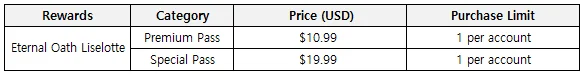 Ā *Ā 'Eternal Oath Liselotte' can be obtained when you purchase the Special Pass.
