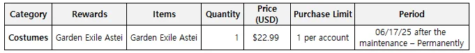 Ā Ā ć“Ā Schedule: 06/24/25 (Tue) 00:00 UTC ā 07/01/25 (Tue) before the maintenance