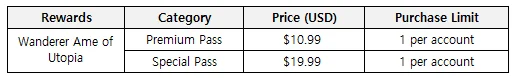 *Ā āWanderer Ame of Utopiaā can be obtained when you purchase the Special Pass.