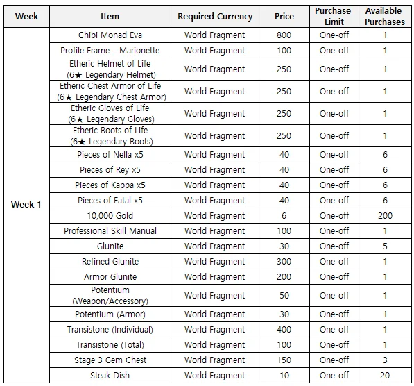 - You can use [World Fragments] acquired from playing through the [In the Great New World] Dungeon
