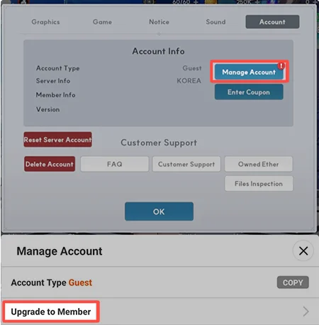 ā» If you have multiple transfer codes, please create accounts to match the number of transfer codes you have.ā» The issued transfer code must be entered on the corresponding server for the transfer to be completed, Ā Ā Ā and server changes are not allowed. ć“ (Ex:) A transfer code for the Korea server cannot be used on the Japan server ć“ (Ex:) A transfer code for the Korea server can be used on the Global 2 server.Ā ā»Ā VAGames accounts can be created and linked using [Email / Google / Apple].