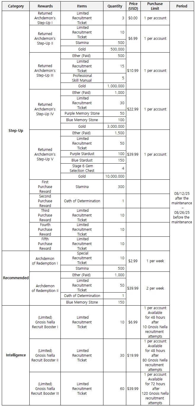 - Event Schedule: 08/12/25 (Tue) after the maintenance ā 08/26/25 (Tue) before the maintenance