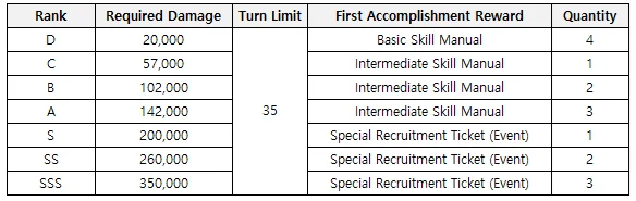 Ā You can acquire rewards relative to the rank you've acquired based on the damage dealt. (Available once per day)Ā