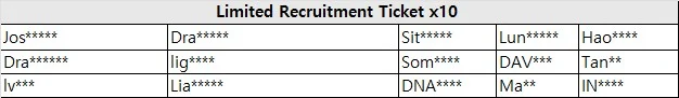 Random Draw (15 Winners): Limited Recruitment Ticket